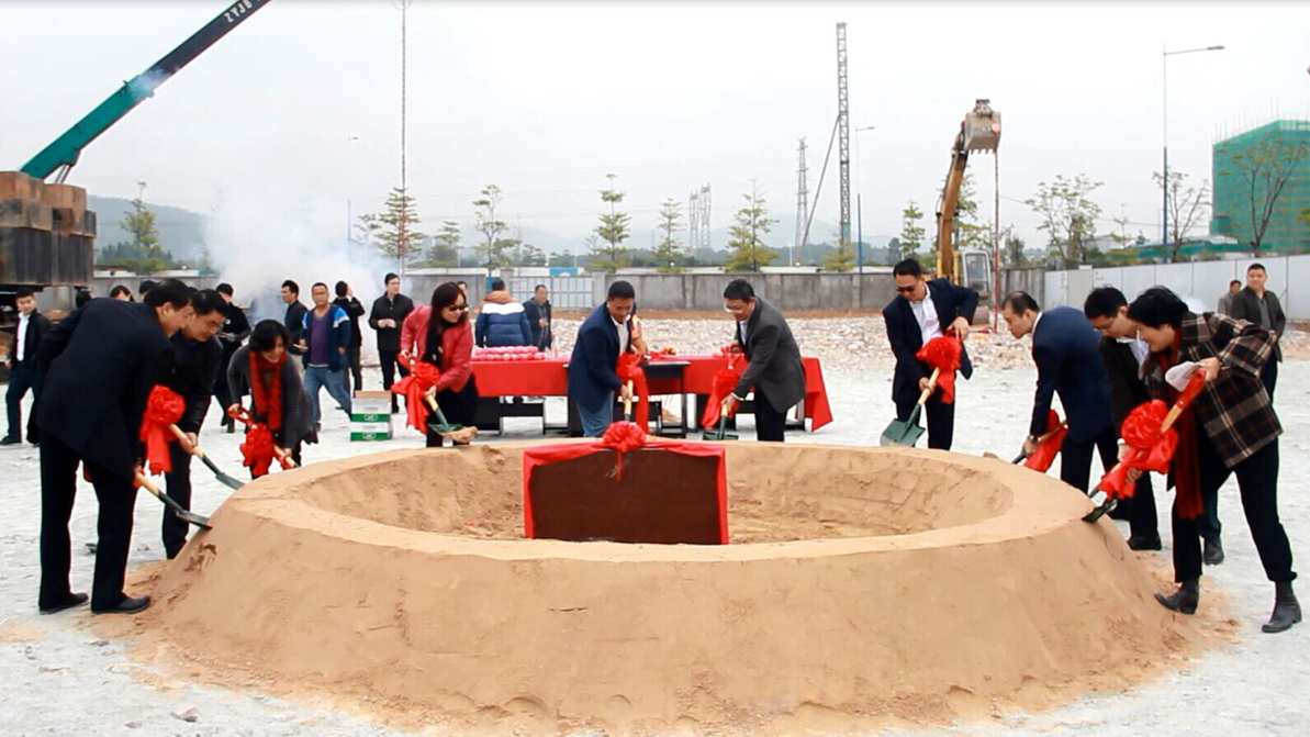 佳都集团、乐玩lewin科技广州总部大楼项目开工奠基仪式开始,董事长刘伟携领导班子成员挥锹奠基。